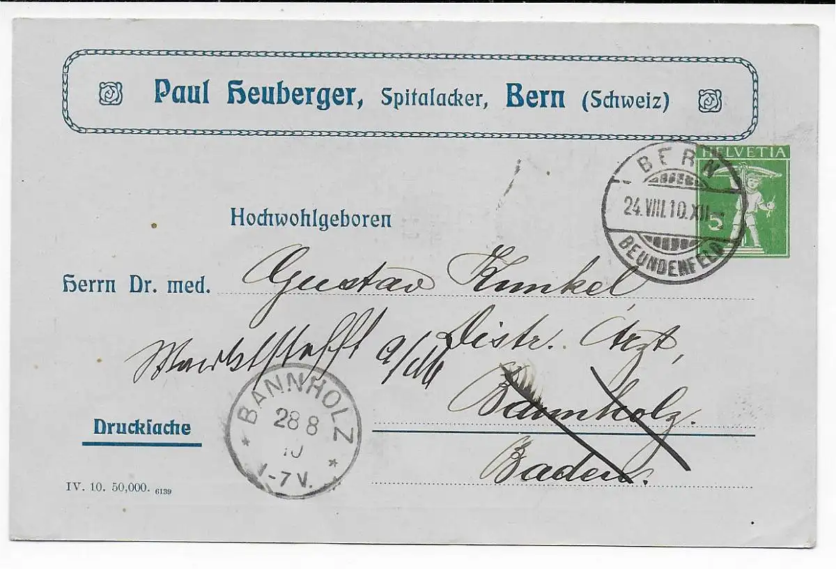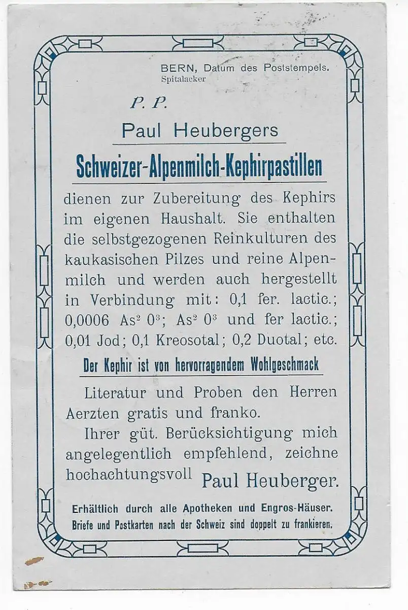 Suisse: Berne 1910 après Banniholz, Cause d'impression: Lait Alpin Pastilles