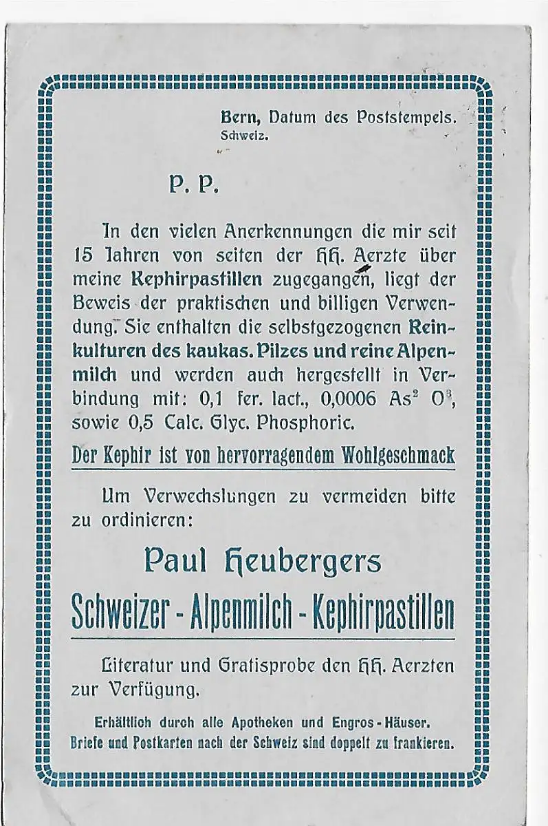 Suisse: Berne 1912 d'après Marktstedt, Heuberger Kephirpastillen, Stichtschichtsicht