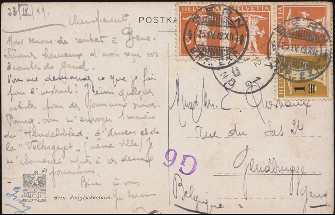 Suisse: Berne - Tour de cloches, facture Tellknaben BERN 25.4.19 vers Belgique