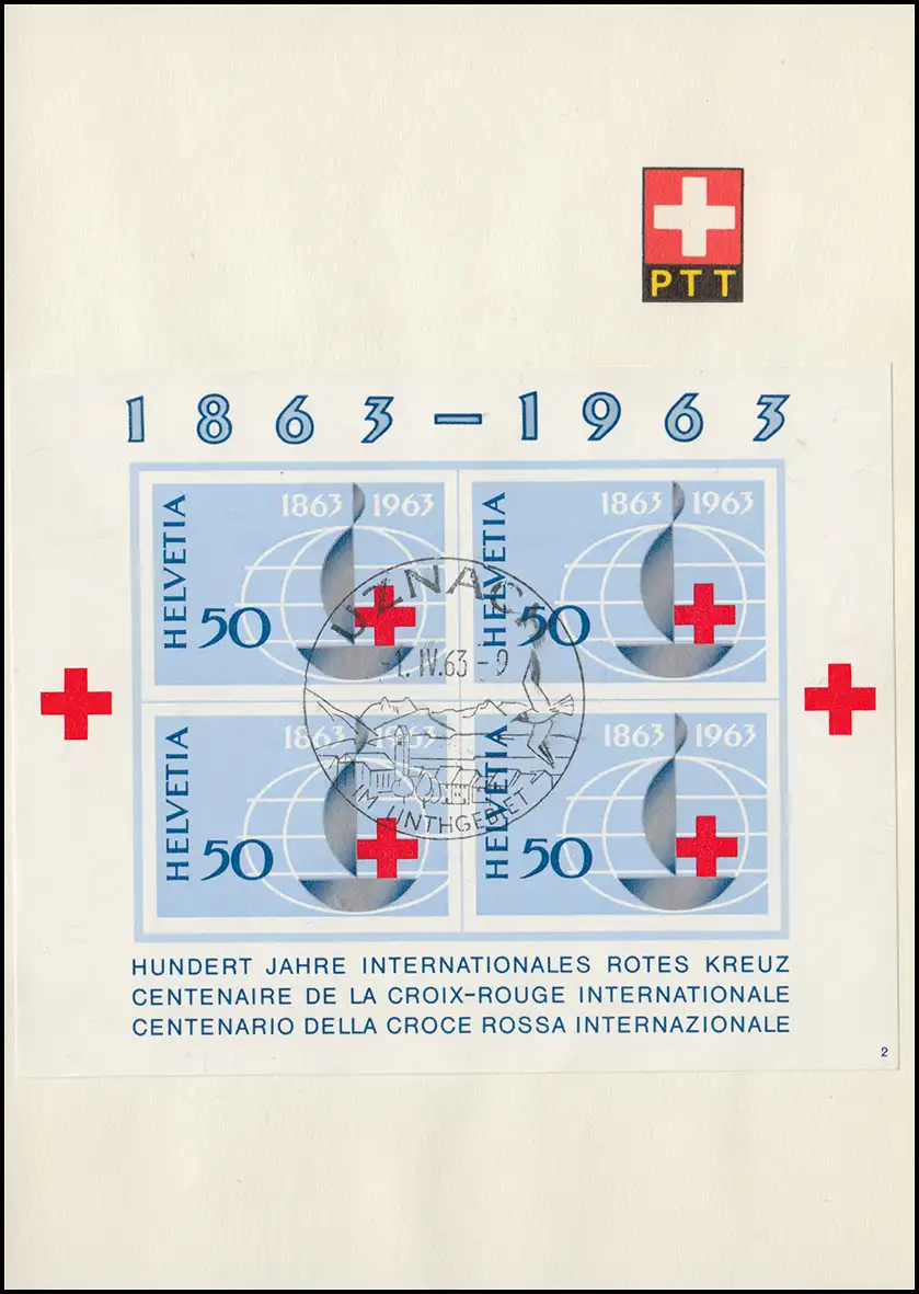 Suisse Bloc 19 n° 2 Croix-Rouge internationale sur papier commémoratif 1.4.63