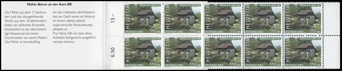 Suisse Carnets de marques 0-125, Pro Patria Mühle Büren an der Aare 2002, **