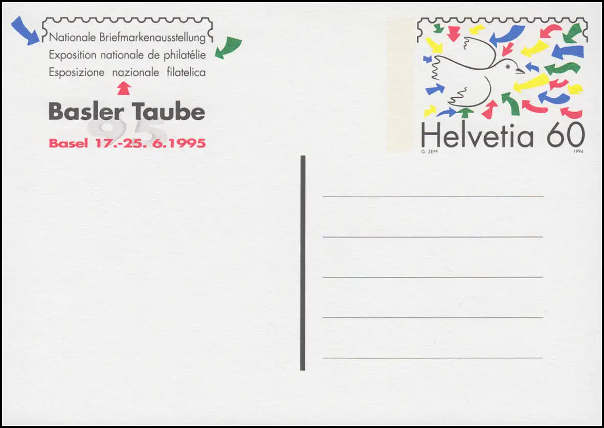 Suisse Carte postale P 254 Exposition de Bâlois Pigeon 95, ** frais de port