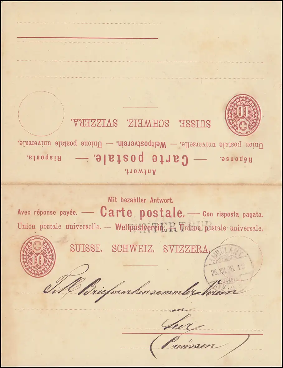 Suisse P 15 double carte AMBULANT 33 - 26.8.86 Dépliant WINTERTHUR vers Leer
