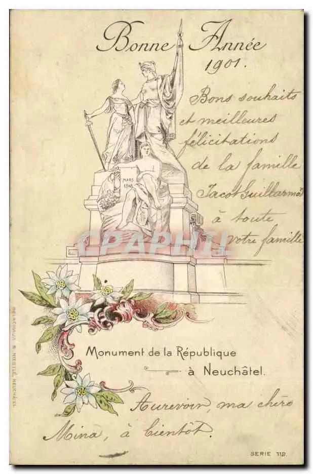 Suisse - Switzerland - Neuchatel - Bonne Annee 1901 Monument de la Republique a Neuchatel Cartes postales