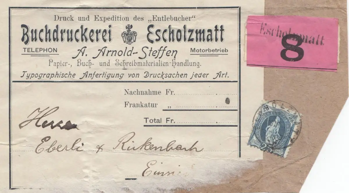 Suisse: imprimerie de livres Escholzmatt, partie d'adresse