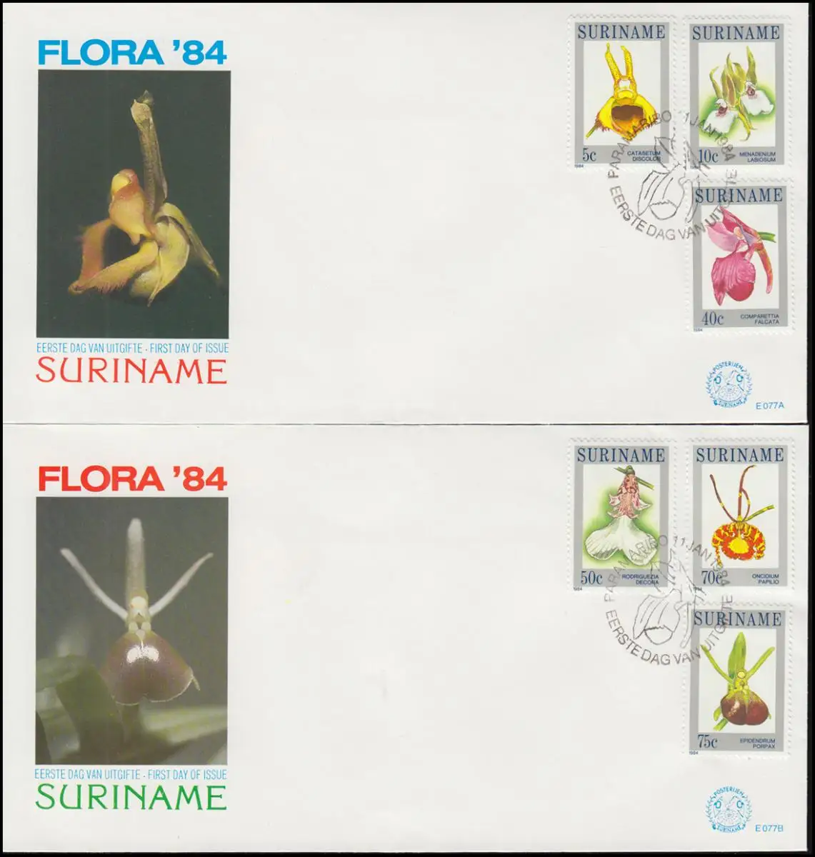 Surinam FLORA Orchidées 1984 - ensemble sur 2 bijoux FDC
