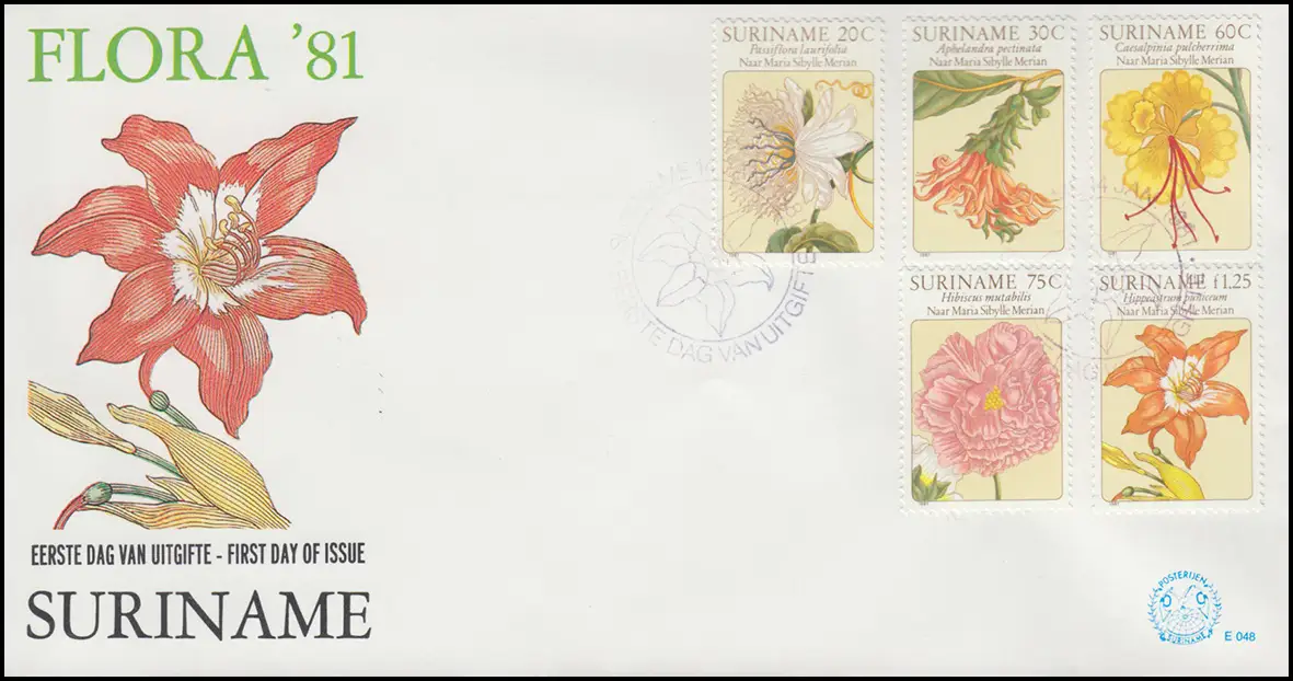 Surinam Flora 1981 Maria Sibylla Merian: Fleurs Fleurs fleurs sur Bijoux-FDC