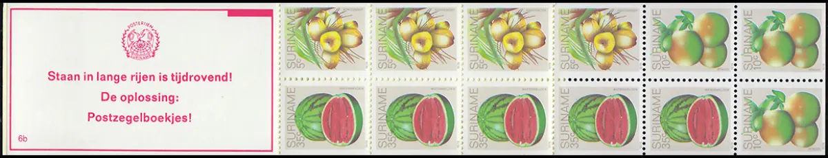Surinam Carnet de marque 9 Fruits Fruit 5,10,35 Ct., PB 6b Staan ... 1980