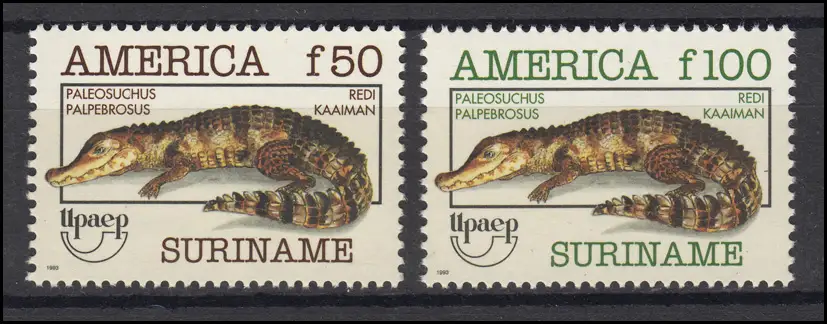 Suriname 1455-1456 Kaiman Paleosuchus & Upaep Exposition 1993, 2 valeurs, ensemble **