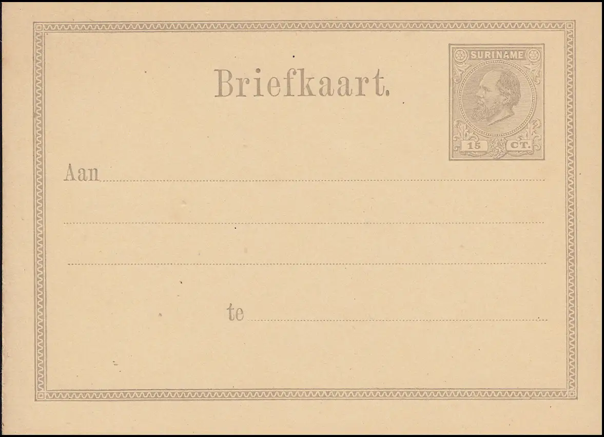 Suriname Carte postale / Post Card 15 Ct. brun 1878, non utilisé **