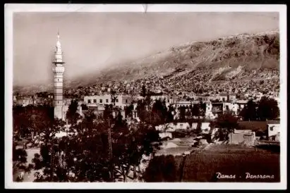 Syrien. Damas.Panorama. - Beschrieben aber nicht gelaufen. 1955. Briefmarke entfernt. Kl. Riss. (Asien, Syrien).
