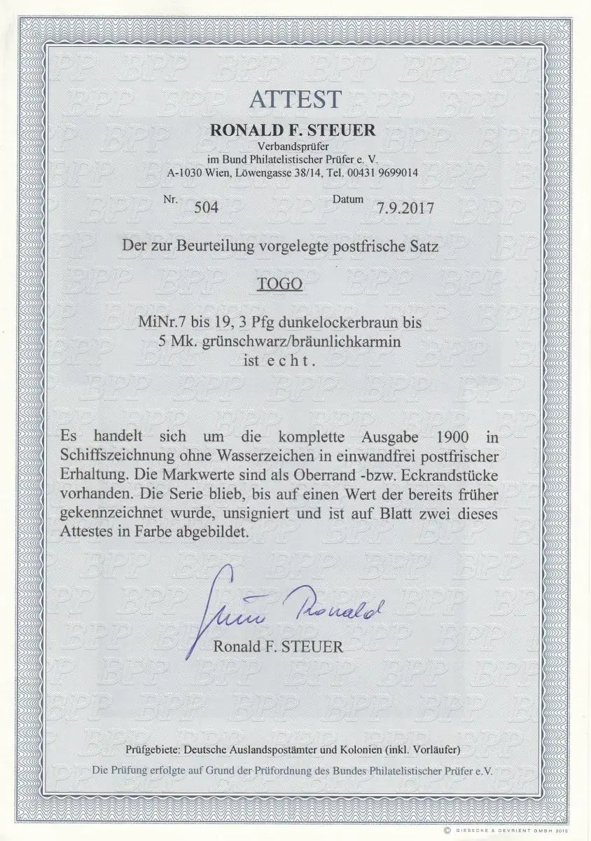 TOGO: MiNo 7 - 19, post-free, BPP Attest