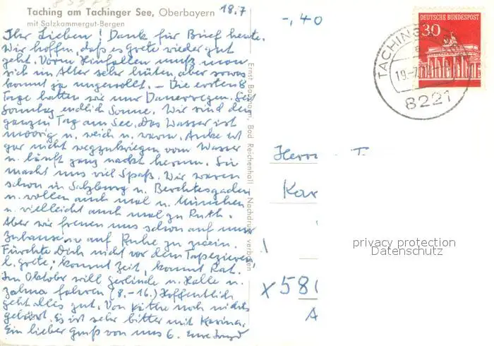 Taching_See Panorama am Tachinger See Taching See postalisch gelaufen 1972 Erhaltung siehe scans [WerneD78] WernPID7