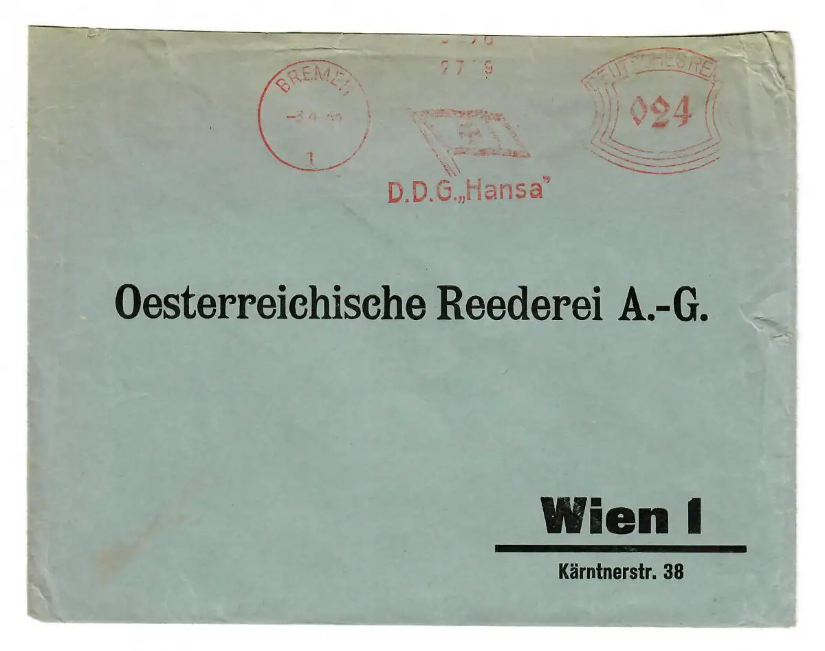 Tampon libre Bremein: D.D.G. Hansa à Vienne, Österr. compagnie maritime, bateau à vapeur