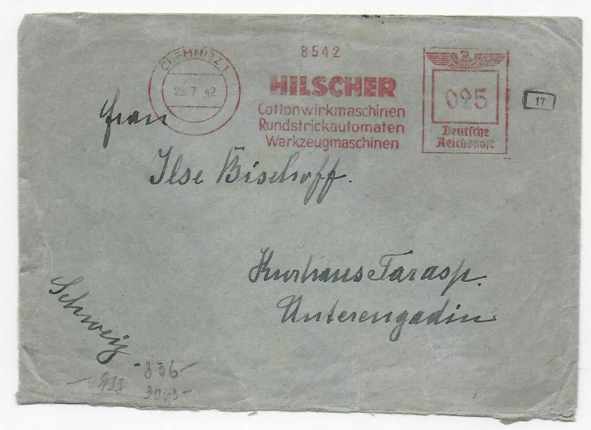 Tampon libre de Chemnitz à la Basse-Angleterre/Suisse avec censure