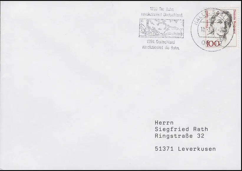 Tampon publicitaire Die Bahn révolutionne l'Allemagne ..., Lettre Magdeburg 18.3.94