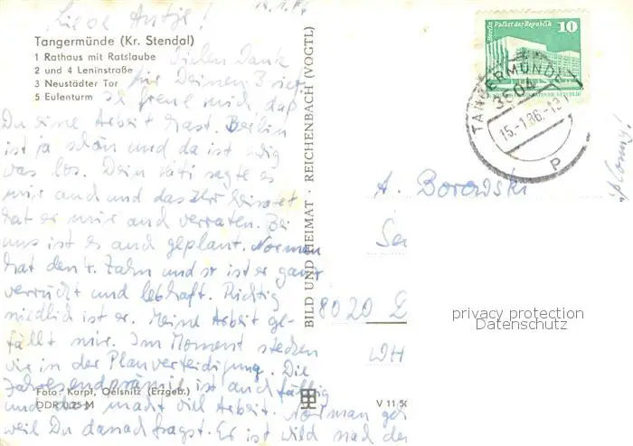 Tangermuende Rathaus Leninstrasse Neustaedter Tor Eulenturm Tangermuende postalisch gelaufen 1986 Erhaltung siehe scans [WerneD78] WernPID7