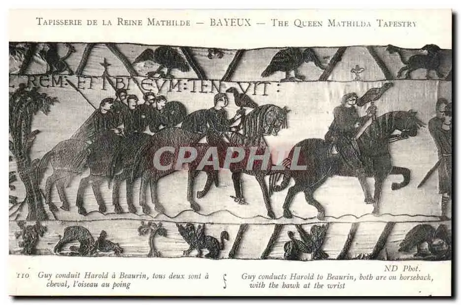 Tapissserie de la reine Mathilde Bayeux Cartes postales Guy conduit Harold a Beaurin