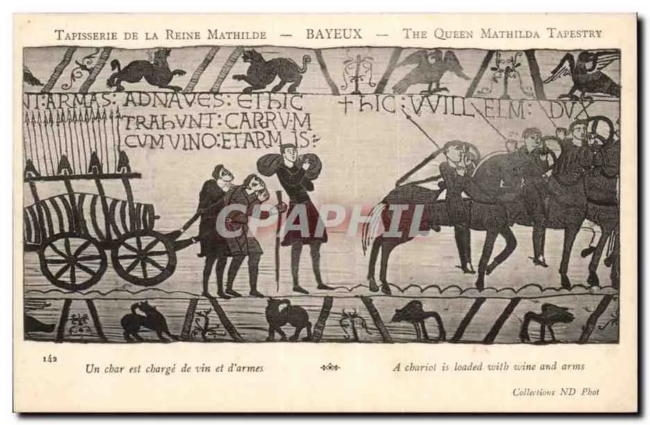 Tapissserie de la reine Mathilde Bayeux Cartes postales Un char est charge de vin et d'armes