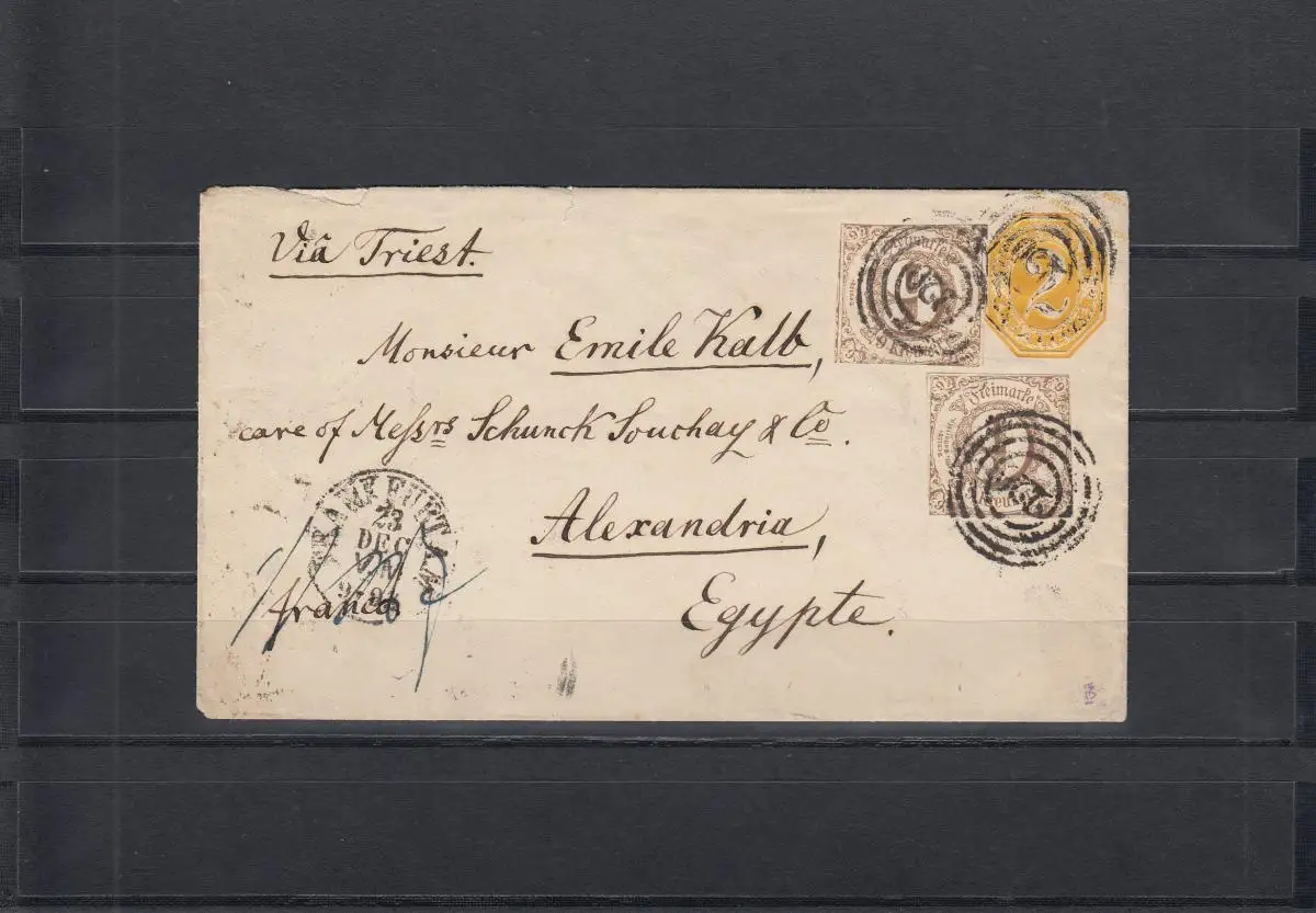 sehr schöner und seltener Bahnpostbeleg aus Britisch Indien F4 OUT / SET N°1 mit Mischfrankatur King Edward / King George 1912 nach nach Frankfurt am Main versandt. Ich bin sehr zufrieden, vielen Dank!
