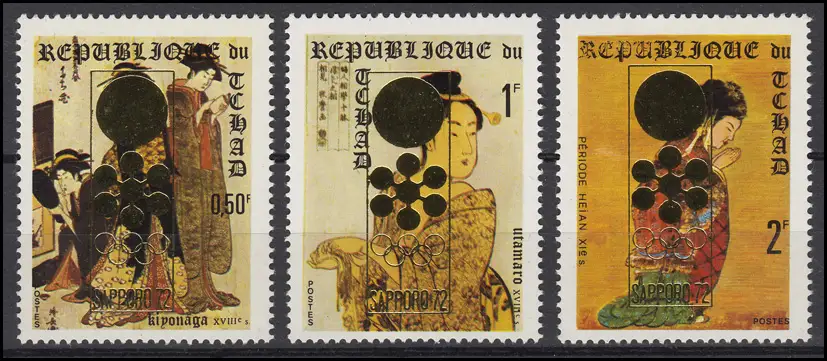 Tchad: Olympia / American Winter Games Sapporo 1972, 3 valeurs, ensemble **