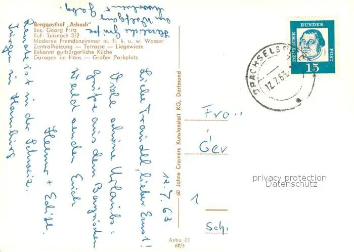 Teisnach Berggasthof Asbach Fliegeraufnahme Teisnach postalisch gelaufen 1963 Erhaltung siehe scans [WerneD78] WernPID7