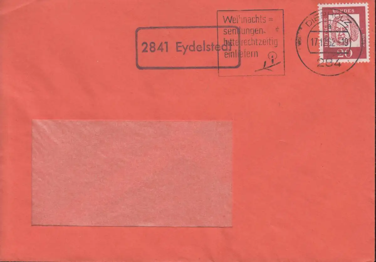 Temple de Landpost 2841 Eydelstedt sur la lettre de fenêtre DIEPHOLZ 17.12.1962