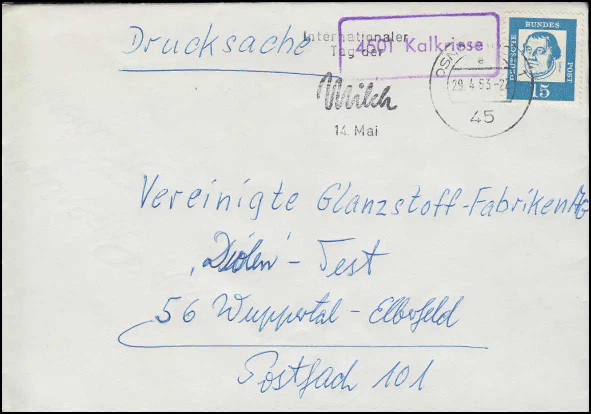 Temple de Landpost 4501 Kalkriese sur l'impression OSNABRÜCK 29.4.1953
