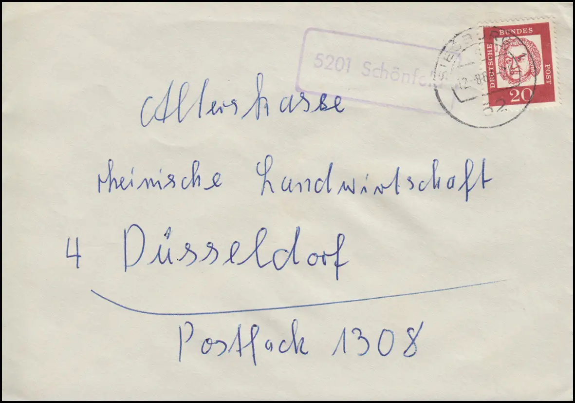 Temple de la poste de campagne 5201 Schönfeld sur lettre SIEBOURG 12.8.1963