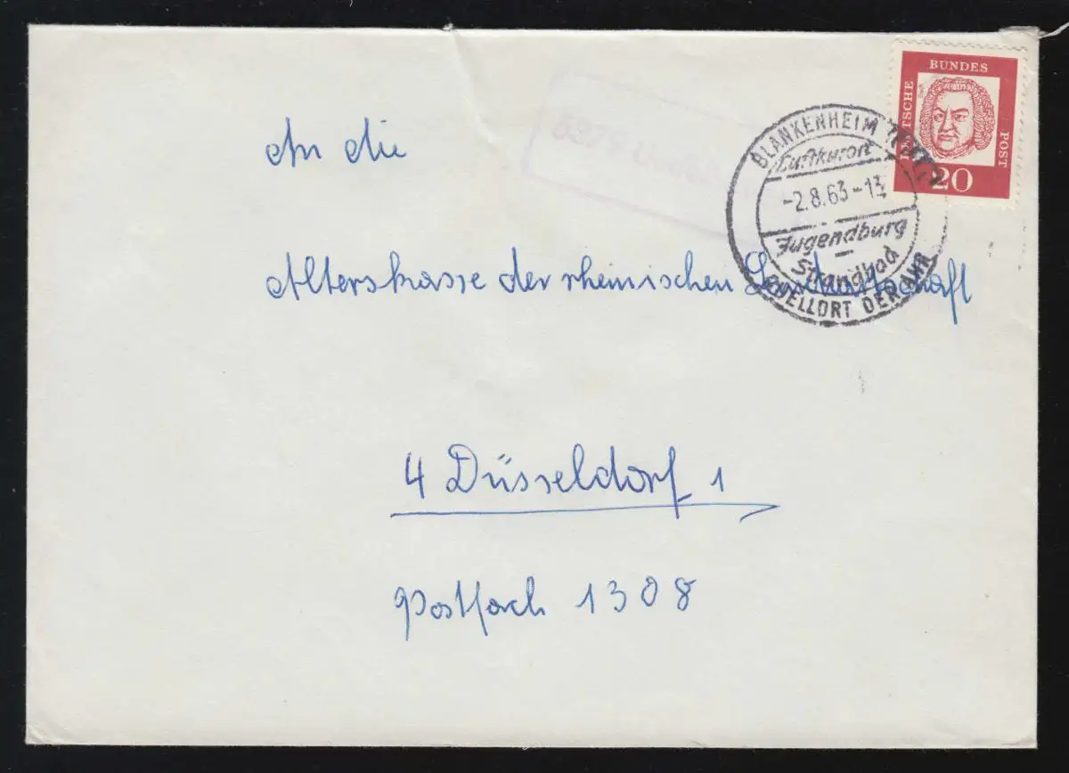 Temple de la poste de campagne 5379 Uedelhoven sur lettre SSt BLANKENHEIM (AHR) 2.8.1963