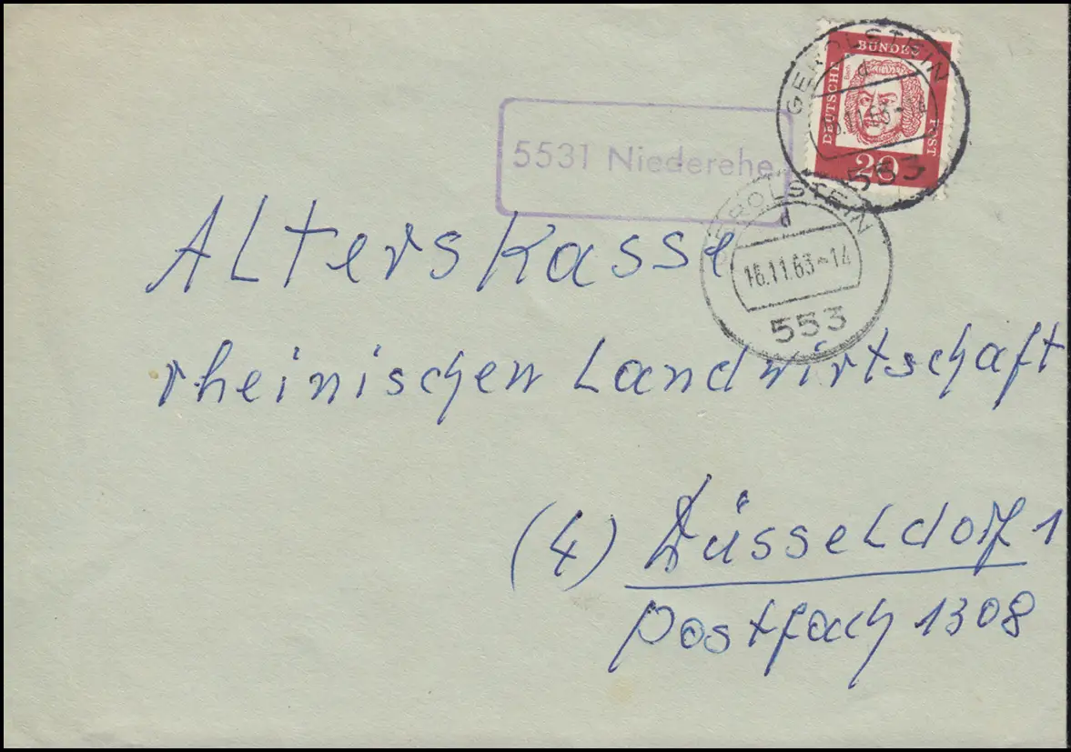 Temple de la poste de campagne 5531 Bas-revêtement sur lettre GEROLSTEIN 16.11.1963