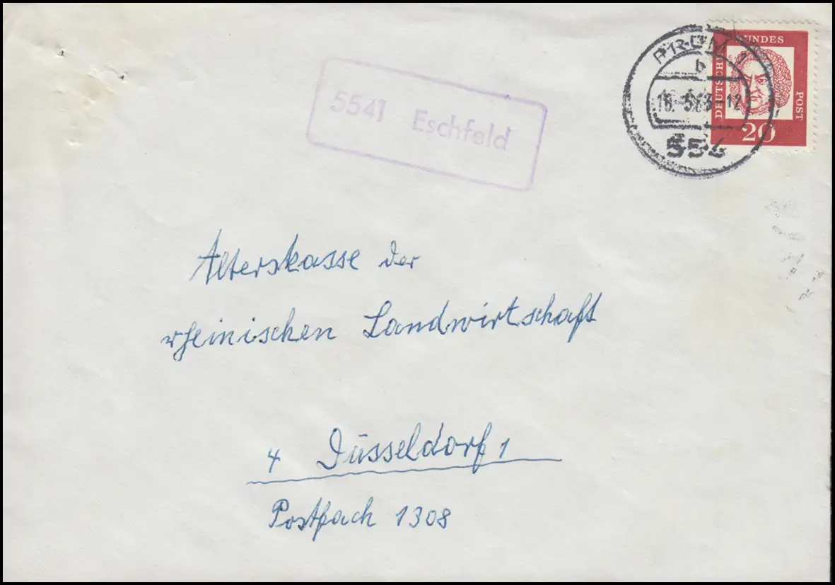 Temple de la poste de campagne 5541 Eschfeld sur lettre PRUM 1 - 16.5.1963