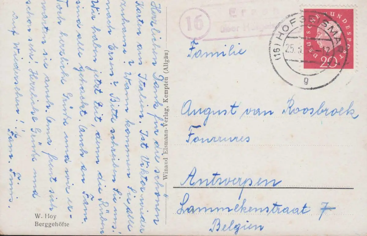 Temple de la poste de campagne Ersen sur Hofgeismar 25.6.1959 Artiste-AK W. Hoy Bergkoupfe
