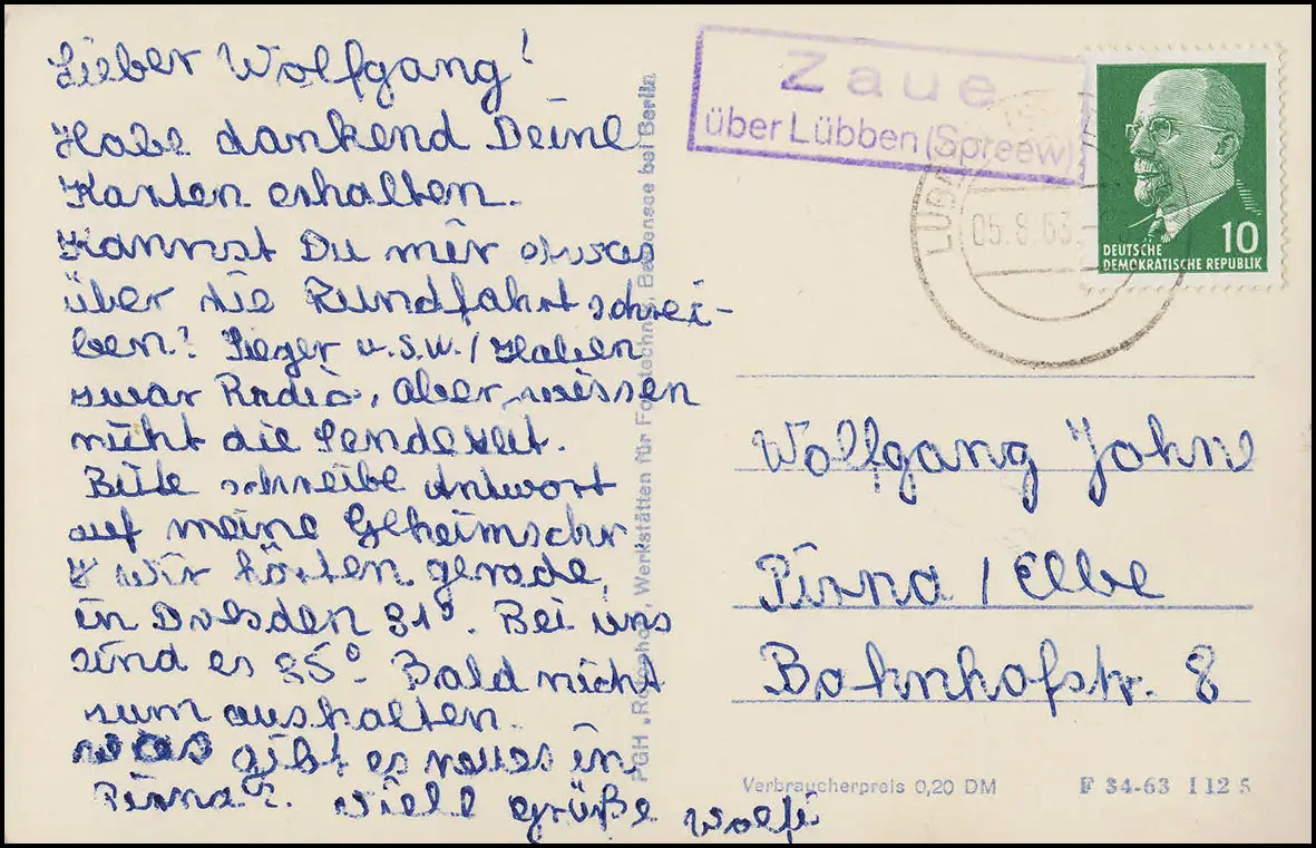 Temple de la poste de campagne Zaue sur Lübben (Spreewald) 5.8.63, AK Goyatz / Schwielochsee