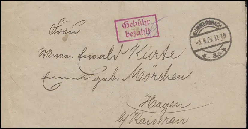 Temple payant-payé sur lettre tribunal de l'Amtsgericht Gummersbach 3.9.23 à Hagen