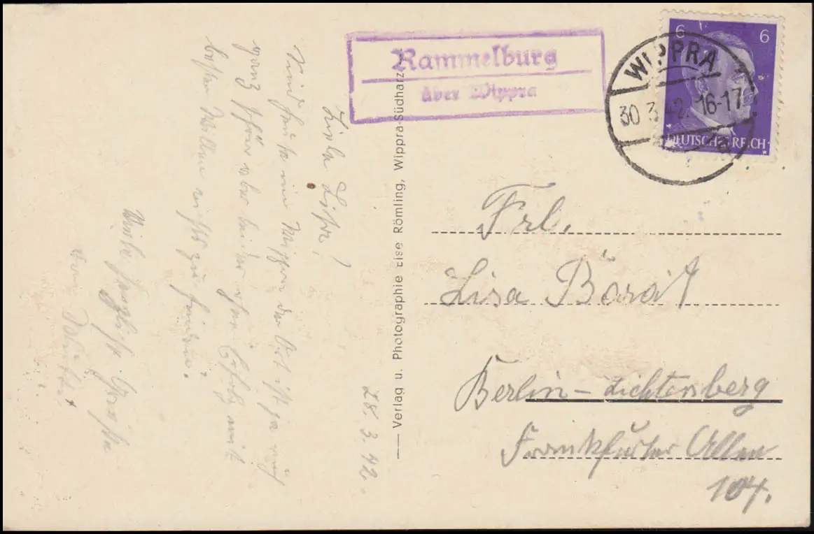 Templier de Rammelburg par l'intermédiaire de WIPPRA 30.3.1942 sur AK Wippra résine du sud
