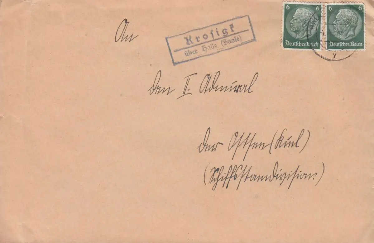 Templier de poste de campagne Krosigk sur HALLE / SAALE 1.4.1937 sur lettre à Kiel