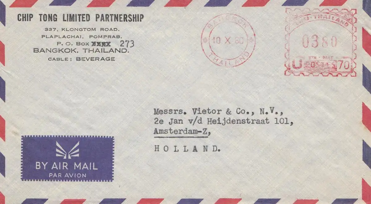 Thaïlande 1980: Chip Tong Limited Partnership Bangkok via air mail to Amsterdam