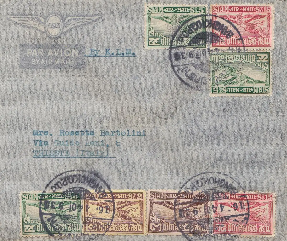 Thaïlande 1940: air mail by KLM Bangkok to Trieste/Italy