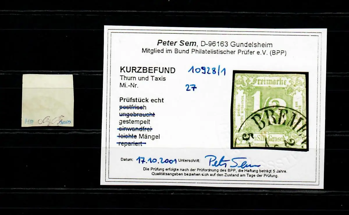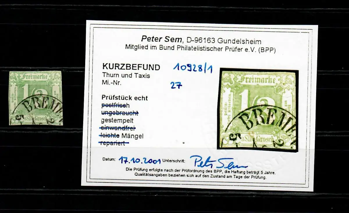Thurn & Taxis: MiN° 27, cacheté, résultat BPP