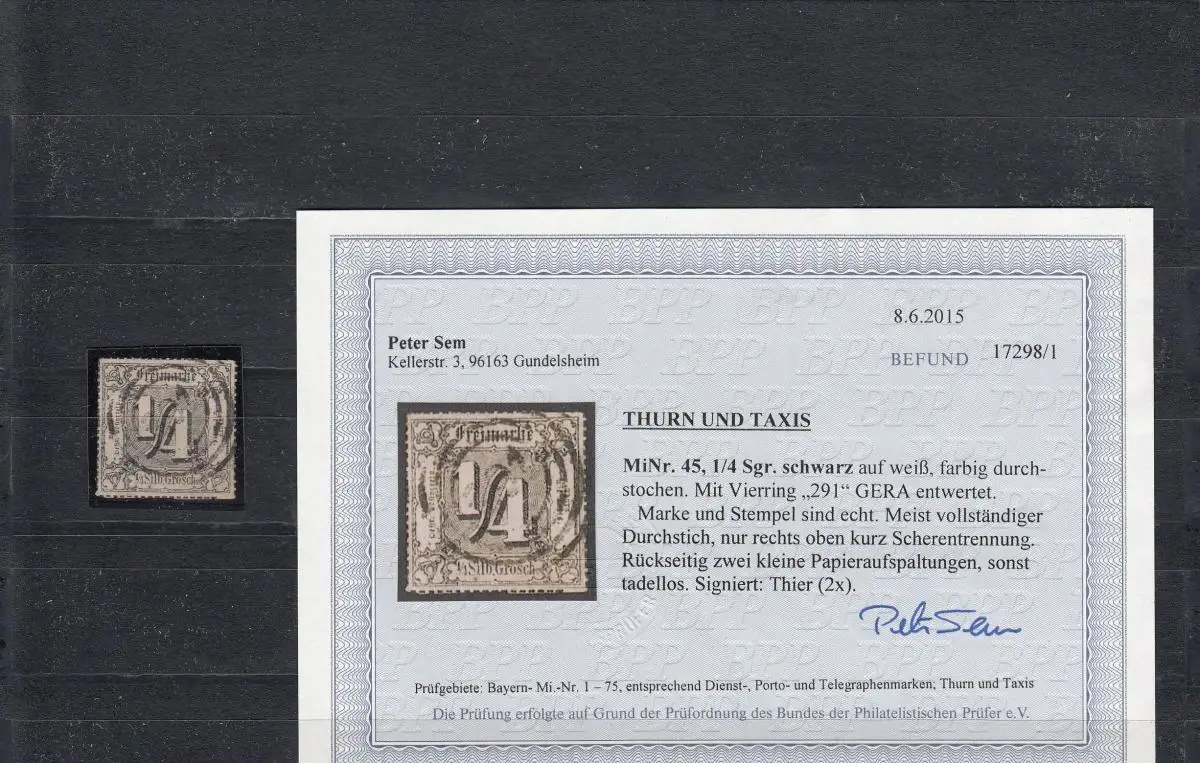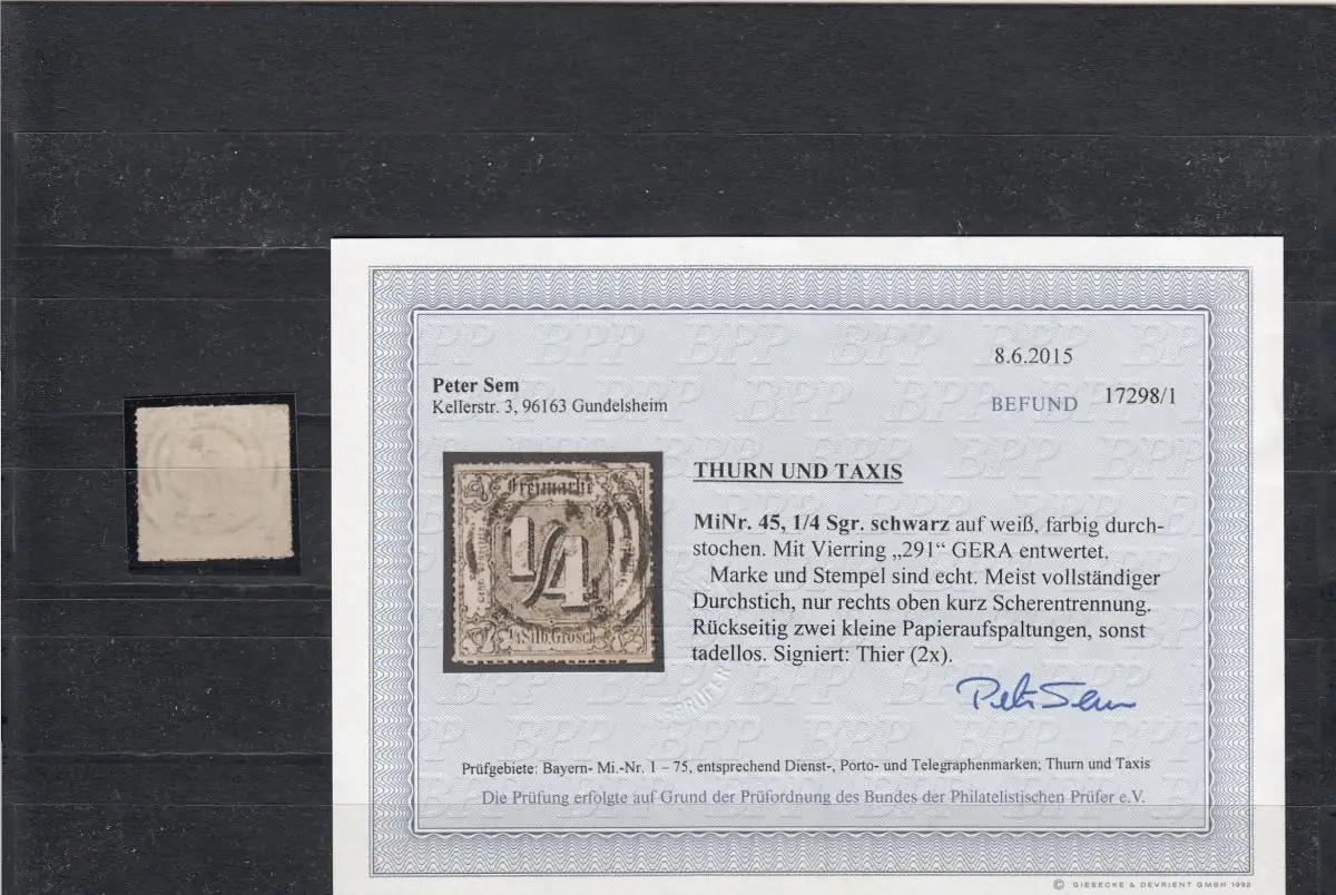 Thurn et taxis, Mi Nr. 45, cacheté quatre anneaux 291 -Gera, BPP résultat