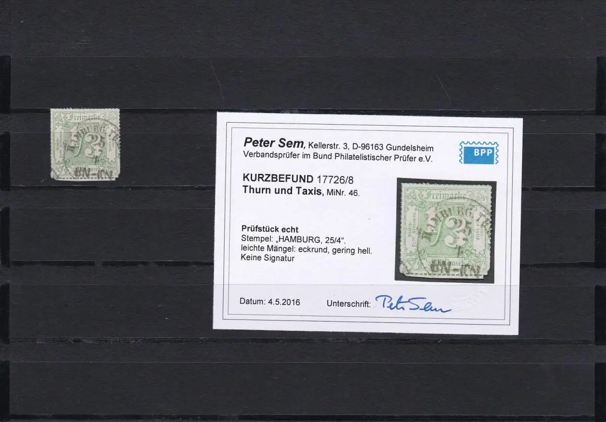 Thurn et taxis: MiNr. 46, cacheté Hambourg, BPP résultat