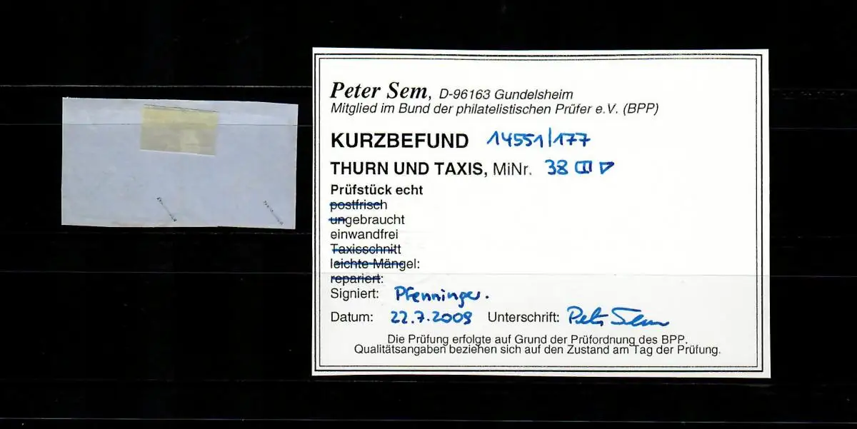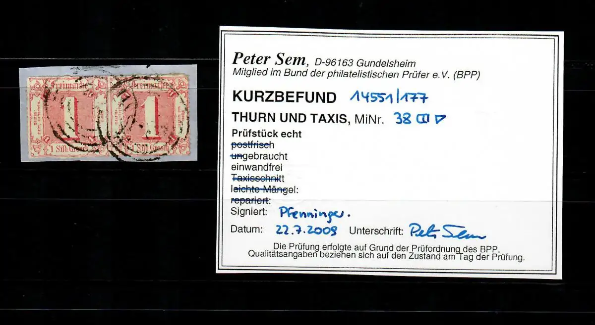 Thurn & Taxis: Min. 38, couple horizontal, tamponné, résultat BPP