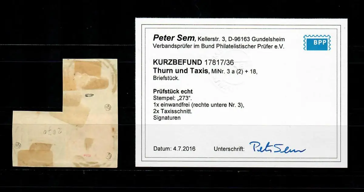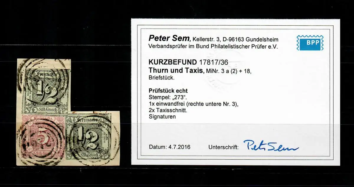 Thurn & Taxis: Min. 3a et 18, cachet 273, BPP résultats