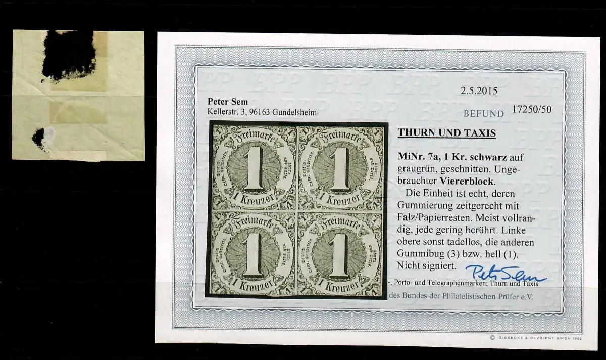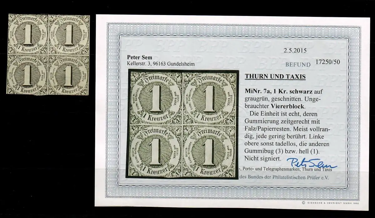 Thurn & Taxis: Min. 7a, bloc à quatre non utilisé, BPP résultats