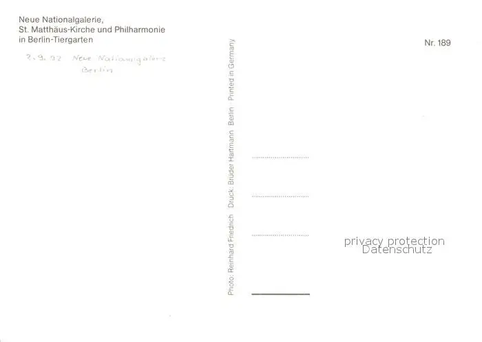 Tiergarten_Berlin Neue Nationalgalerie St Matthaeus Kirche und Philharmonie Tiergarten Berlin postalisch nicht gelaufen nach 1965 Erhaltung siehe scans [WerneD78] WernPID7