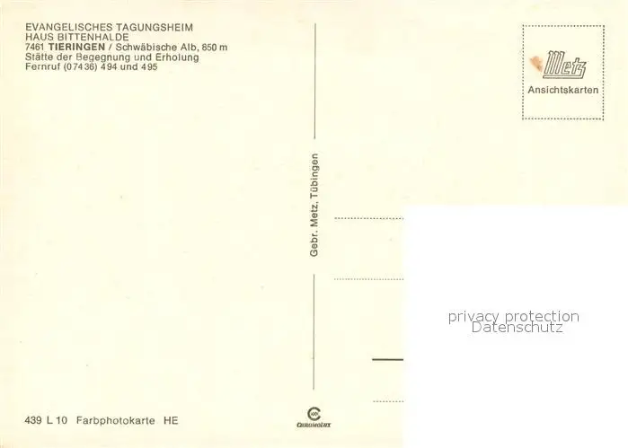 Tieringen Ev Tagungsheim Haus Bittenhalde Tieringen postalisch nicht gelaufen nach 1965 Erhaltung siehe scans [WerneD78] WernPID7