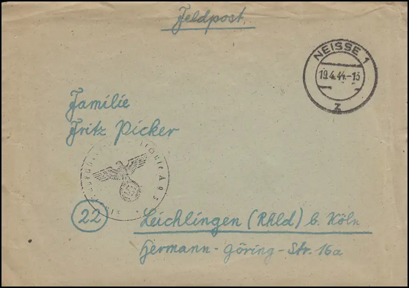 Timbre de poste de l'école du chef d'avion A 93 NEISSE 1z 19.4.44 n. Cadavres
