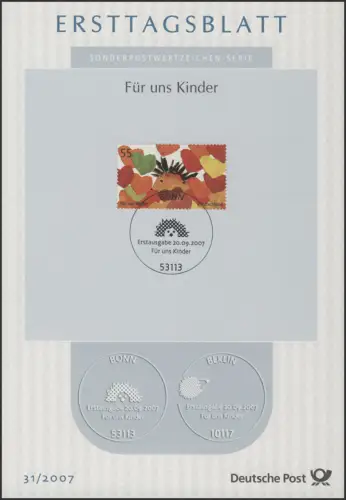 10 ans de codes postaux à cinq chiffres, FDC ESSt Bonn 12.6.2003