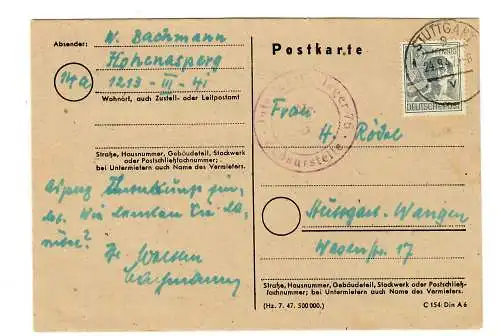 Carte postale Stuttgart Weil-im-Vorf vers Berlin, 1947